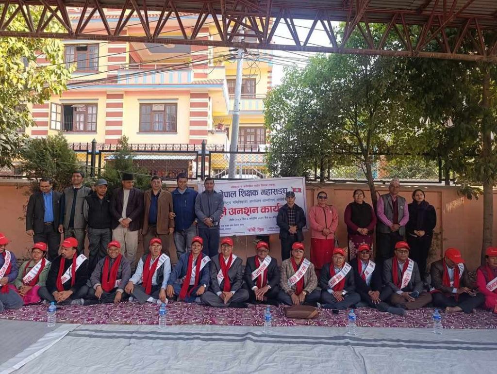 नेपाल शिक्षक महासंघको नेतृत्वमा शिक्षकहरू सानोठिमीस्थित शिक्षा तथा मानव श्रोत विकास केन्द्रमा अनशनमा बसेका हुन् । चरणबद्ध आन्दोलन घोषणा गरेको महासंघले १५ चैतसम्म अनशनमा बस्ने जनाएको छ ।