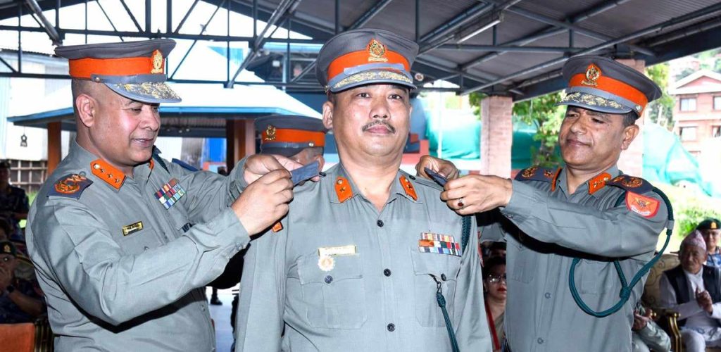 काठमाडौं । सशस्त्र प्रहरी महानिरीक्षक राजु अर्यालले सशस्त्र प्रहरी अतिरिक्त महानिरीक्षक (एआईजी) पदमा बढुवा भएका गणेश बहादुर ठाडा मगरलाई दर्ज्यानी चिह्न प्रदान गरेका छन् ।
