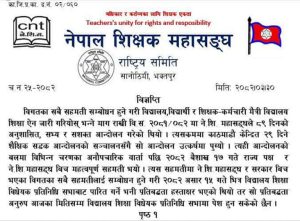 काठमाडौं । सरकारसँग भएको सहमति अनुसार विद्यालय शिक्षा ऐन जारी नभएपछि शिक्षक महासंघले फेरि आन्दोलनको चेतावनी दिएको छ ।