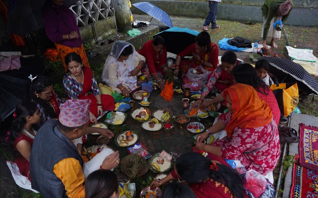 यसदिन महिलाले बिहानै उठेर नित्य कर्म गरी नजिकको नदी, खोला, ताल, तलैया र पोखरीमा गई ३६५ वटा दतिवनले दाँत माझ्ने, गाईको ग...